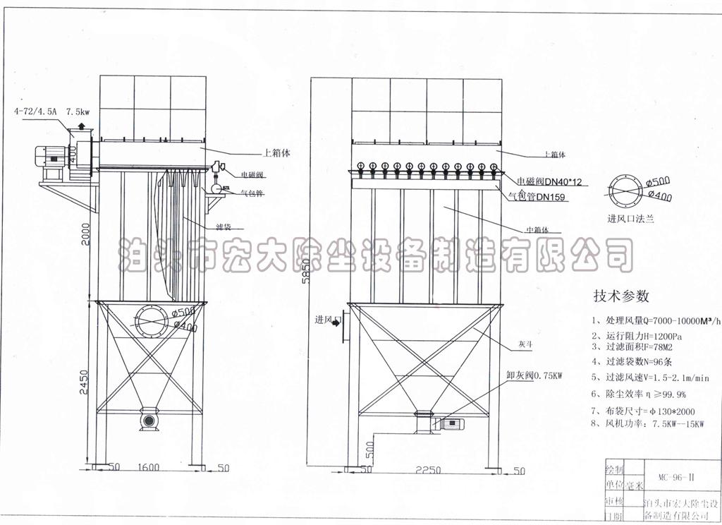 注意事項:1、本脈沖袋式除塵器不適用于帶有腐蝕性的氣體,不應(yīng)長時間處理高于120度的廢氣。如需要處理高溫廢氣,需定做高溫除塵布袋2、本袋式除塵器在開、停及運轉(zhuǎn)過程中,如有異?,F(xiàn)象,應(yīng)立即停止工作,進行檢查修理。3、停機應(yīng)按停止按鈕,讓搖動機構(gòu)工作數(shù)十秒,不要直接切斷電源