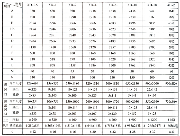 XD-Ⅱ型多管旋風(fēng)除塵器安裝尺寸 XD-Ⅱ型多管旋風(fēng)除塵器安裝尺寸